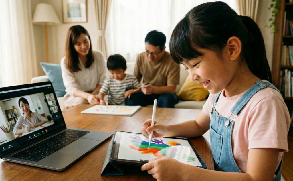 iPadなどのデジタルデバイスを活用し、絵を描く技術を学ぶだけでなく、制作した作品を販売したり、対価を得たりする経験までをカリキュラムに組み込むことで、社会の仕組みやマネーリテラシーを実体験として学べる点が大きな特徴です。