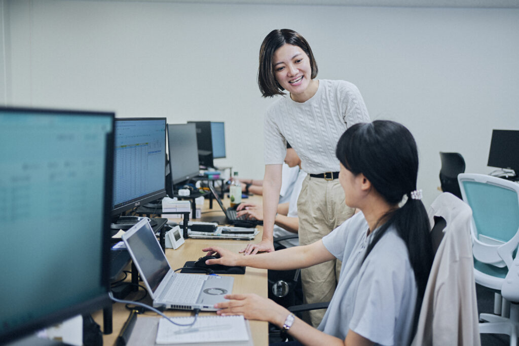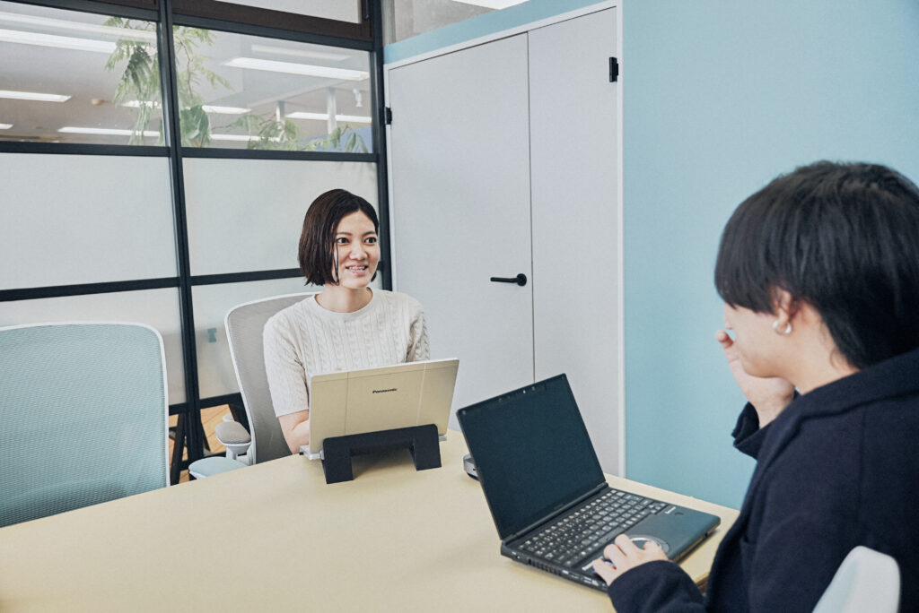 また、マネジメント職としてチームメンバーの育成にも関わっています。1on1を通じて目標設計や課題整理を行い、メンバーが自立して成果を出せるよう伴走します。さらに、採用面談など組織づくりにも関わっています。